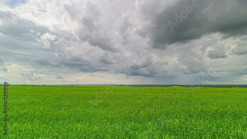 Obraz premium Vast and Expansive Green Fields Spread Out Under a Dramatic and Striking Sky...