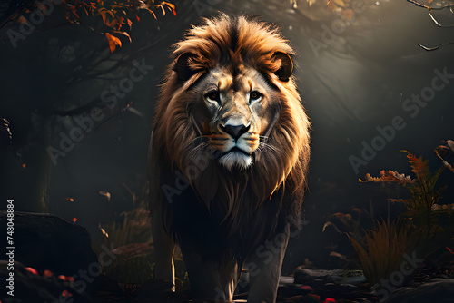 Fototapeta premium Vast and mysterious nature and one lion Generative Ai