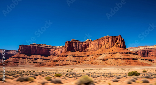 © 18s, Fototapeta premium Vast Arid Desert Landscape Under a Brilliant Blue Sky