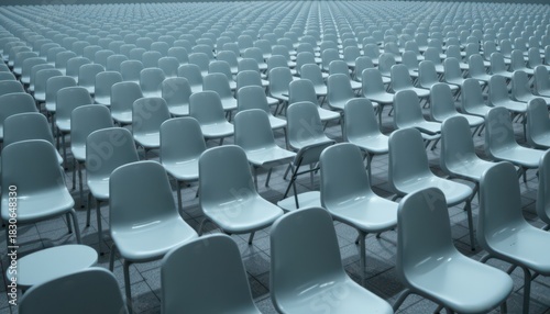 Obraz premium Vast Array of Empty Chairs Organized in a Large Indoor Space with Neutral...