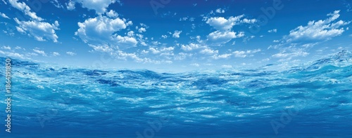 © afia, Fototapeta premium Vast blue sky meets rippling blue water