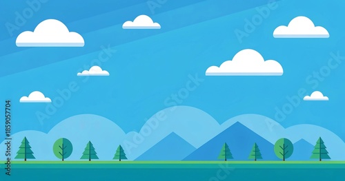 Obraz premium Vast Blue Sky with Fluffy Clouds Over Rolling Green Hills and Majestic Mountains