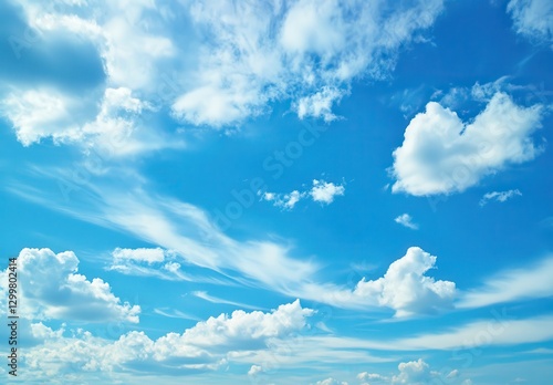Fototapeta premium Vast Blue Sky with Fluffy White Clouds and Wispy Cloud Patterns, Perfect for...