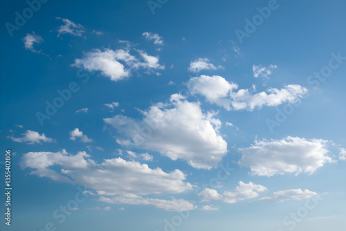 Fototapeta premium Vast blue sky with scattered fluffy white clouds