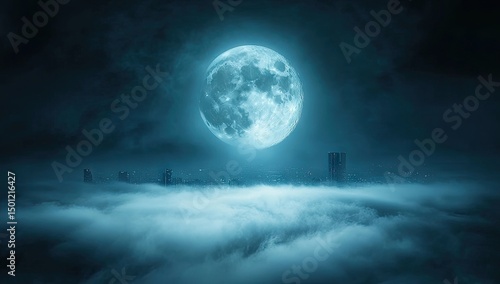 Fototapeta premium Vast city shrouded in mist, moonlit night