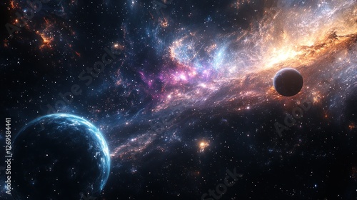 Obraz premium Vast Cosmic Landscape with Colorful Nebula and Planets in Space
