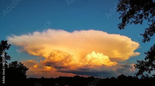 Fototapeta premium Vast Cumulonimbus Cloud Stretching Across the Evening Sky with Golden Sunset...
