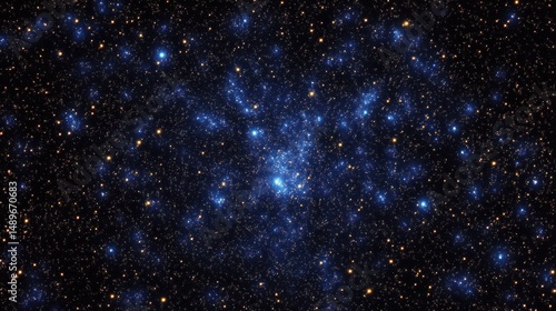 Fototapeta premium Vast deep space scene filled with numerous blue and orange stars scattered across a dark cosmic background evoking awe and mystery