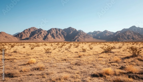Naklejka premium Vast desert expanse. Mountains in the distance