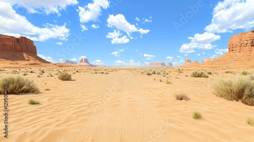© Income, Fototapeta premium Vast Desert Landscape Under a Bright Blue Sky