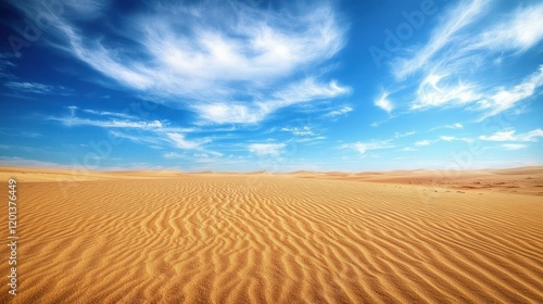 © sup, Naklejka premium Vast Desert Landscape Under a Vivid Blue Sky
