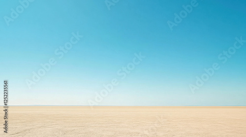 Naklejka premium Vast Desert Landscape Under Clear Blue Sky with Soft Horizon