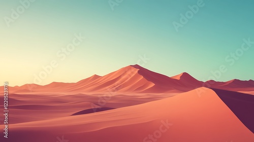 Naklejka premium Vast Desert Landscape Under Clear Sky Highlighting Emptiness and Serenity of Nature in a Minimalist Setting