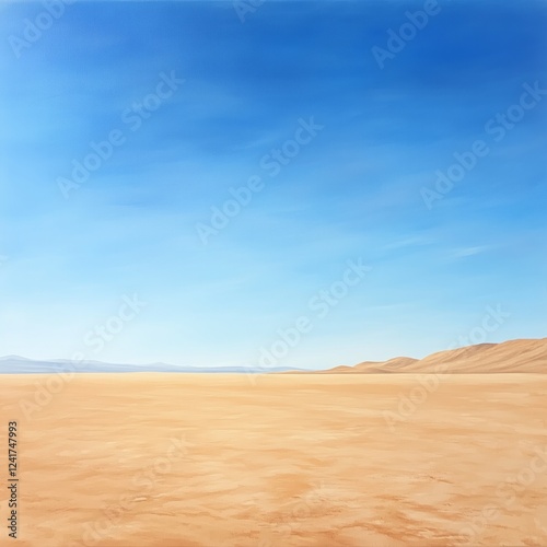 Fototapeta premium Vast desert landscape with clear blue sky and distant sand dunes