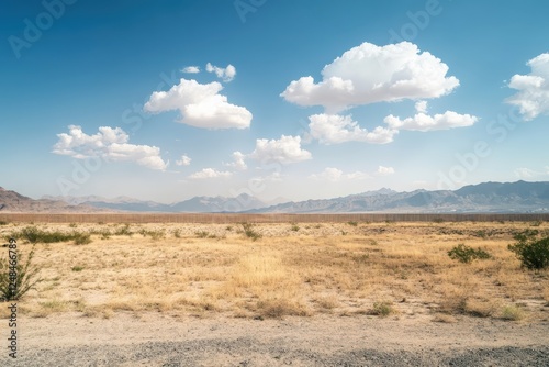 © Jovicic, Fototapeta premium Vast desert landscape with fluffy white clouds