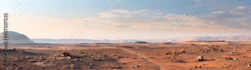 © Balaraw, Fototapeta premium Vast desert landscape with mountains in the distance