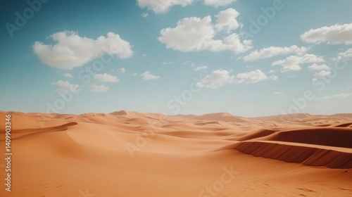 Fototapeta premium Vast Desert Landscape with Soft Rolling Sand Dunes and Clouds