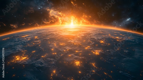 Fototapeta premium Vast digital world glowing with a bold cosmic rocket launch