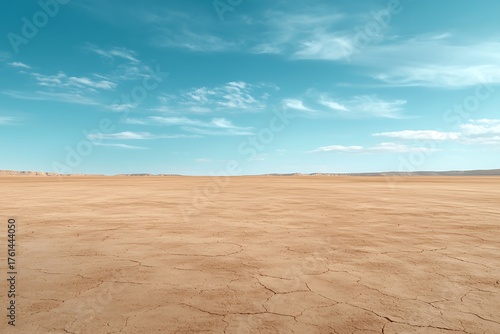 Fototapeta premium Vast Empty Landscape with Cracked Earth and Clear Blue Sky Under Natural...