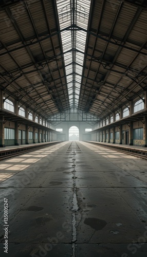 Fototapeta premium Vast Empty Warehouse with Natural Light and Industrial Architecture