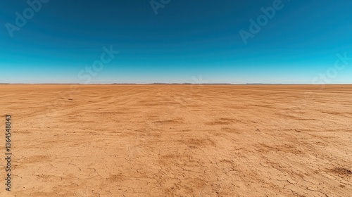 Naklejka premium Vast Expanse of Dry Desert Landscape Under a Clear Blue Sky Arid Terrain Parched Earth and Sunlit Horizons