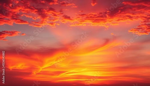 Obraz premium Vast, fiery sunset sky ablaze with orange, pink, and purple hues, breathtaking, scene