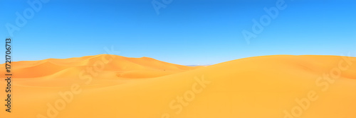 Fototapeta premium Vast golden desert dunes under clear blue sky, natural beauty