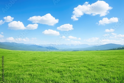 © dinda, Fototapeta premium Vast grassy field stretches under a vibrant sky