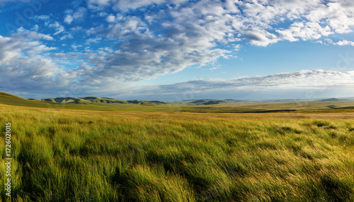 Obraz premium Vast Grassy Plain Under A Partly Cloudy Sky