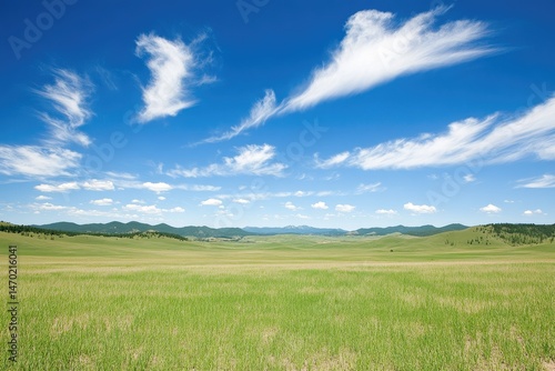 © dinda, Fototapeta premium Vast grassy plain under a vibrant sky