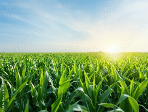 Fototapeta premium Vast Green Field Bathed in Sunlight