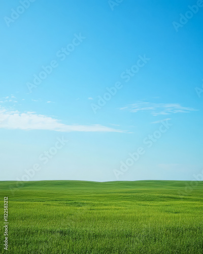 © JuanM, Obraz premium Vast green fields under a bright blue sky showcasing natural beauty and tranquility