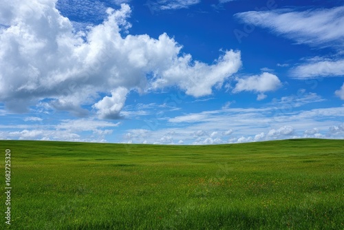 © Agus, Fototapeta premium Vast green meadow under a vibrant blue sky