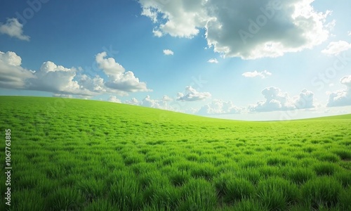 © junet, Fototapeta premium Vast green meadow with cloudy sky