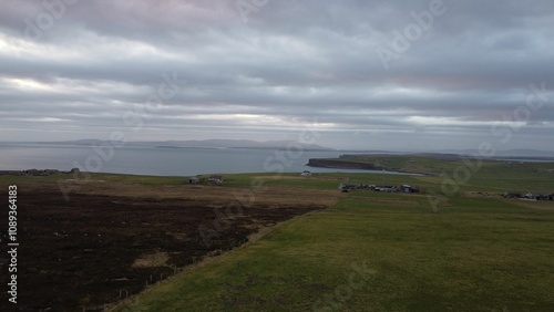 Obraz premium Vast landscape with grassy foreground and calm sea