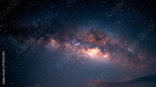 Fototapeta premium Vast milky way galaxy illuminated with countless stars and cosmic dust clouds...