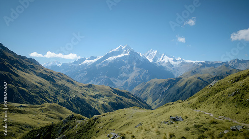 © predator, Obraz premium Vast Mountain Range Panorama Under Sunny Sky