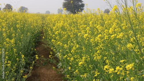 © Passionwith, Fototapeta premium Vast Mustard Field: Yellow Flowers Landscape, Agricultural Cultivation