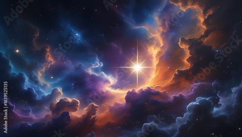 © MohammadAbdul, Fototapeta premium Vast Nebula Galaxy with Bright Star