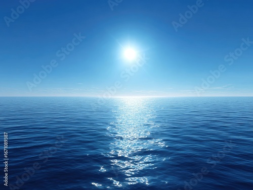 © Khakha, Fototapeta premium Vast ocean, brilliant sun, clear sky