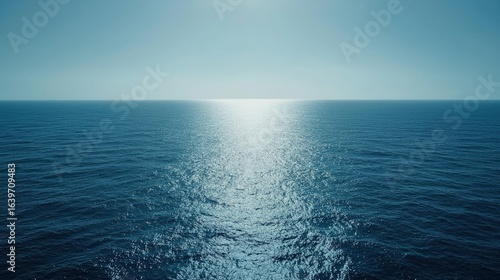 © Nuriya, Obraz premium Vast ocean expanse reflecting sunlight.