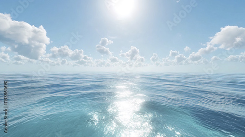 Fototapeta premium Vast ocean horizon with gentle waves and sunlight glistening on water