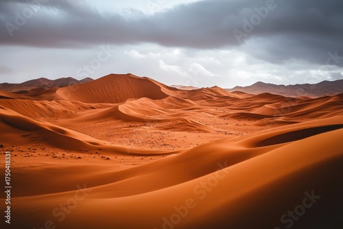 Naklejka premium Vast ochre dunes under a dramatic sky