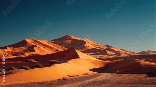 Naklejka premium Vast ochre dunes under a vibrant sky