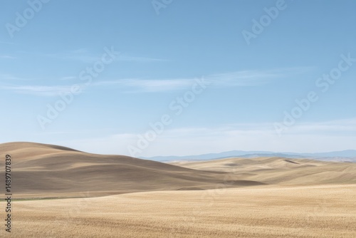 © Andrei, Fototapeta premium vast open field viewed from above with rolling hills in distance capturing essence of tranquility and openness
