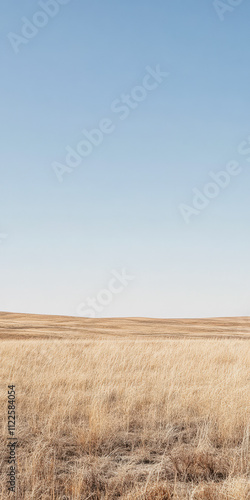 Obraz premium Vast open plain under bright blue sky with golden grassland stretching to the...