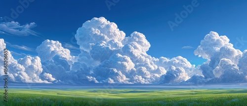 Fototapeta premium Vast Sky with Cumulus Clouds and Lush Grassland