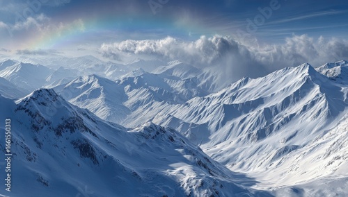 © Hikmah, Naklejka premium Vast snowy mountain range with rainbow