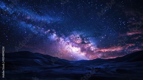 Fototapeta premium Vast Starry Night Sky over a Captivating Open Landscape with the Milky Way Galaxy Creating a Stunning Backdrop Filled with Endless Possibilities