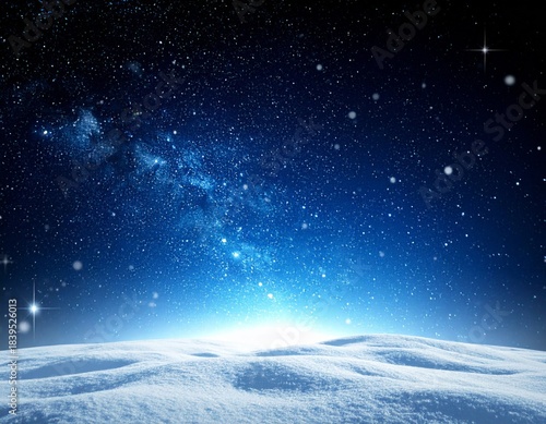 Fototapeta premium Vast Starry Night Sky Over Snowy Landscape with Milky Way and Bright Light